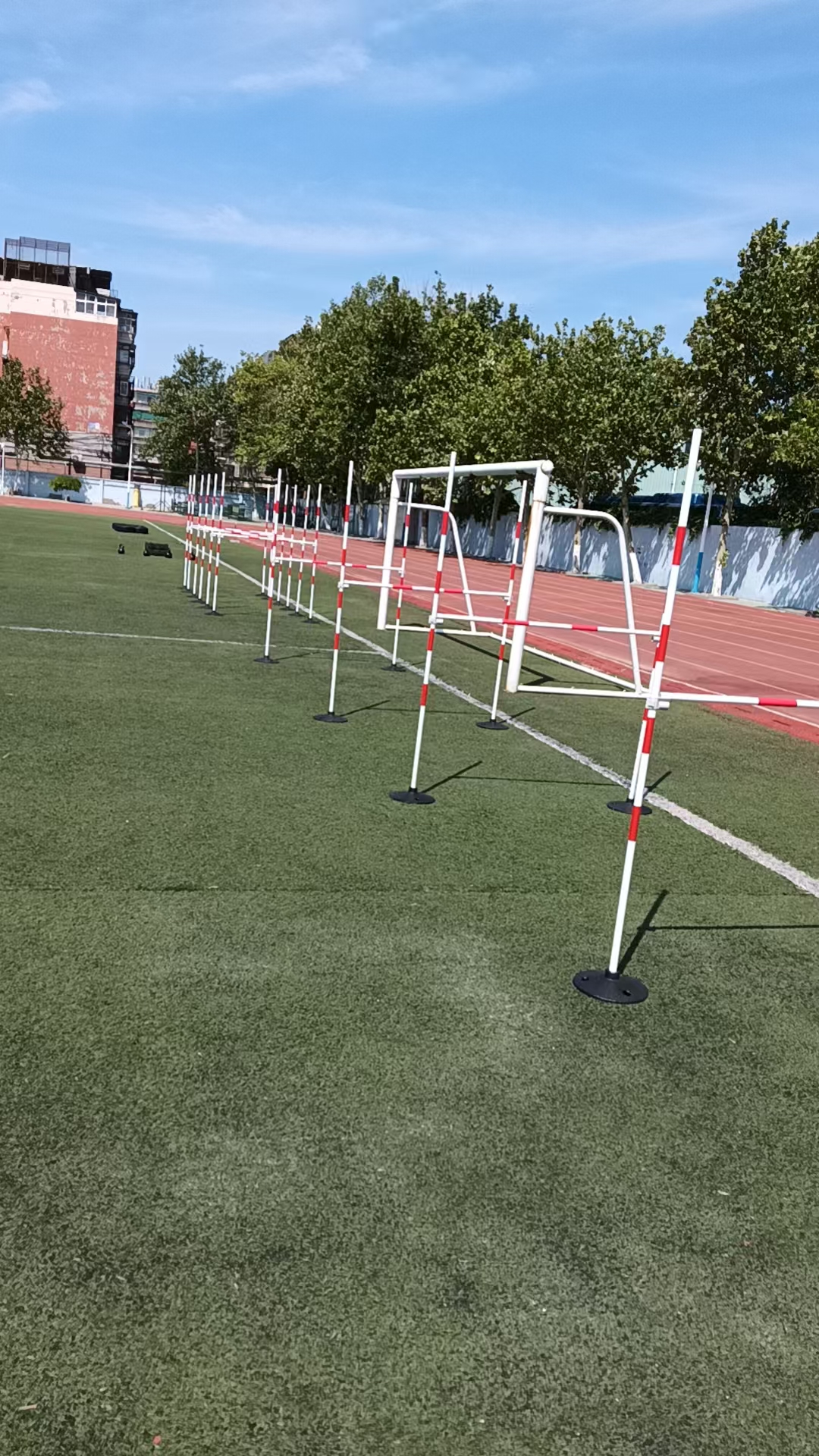 从高栏跳到低栏再从低栏跳到高栏,从而增强了参训人员的腿部锻炼。